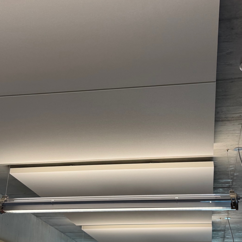 NoFlame Solo ist ein unbrennbares Akustikpanel für Deckenanwendungen, bei denen Akustik, Brandschutz und Gestaltung gleichermassen gefragt sind. Mit einer Materialstärke von 40mm reduziert das Panel den Nachhall wirkungsvoll und verbessert die Raumakustik spürbar – auch bei erhöhten Sicherheitsanforderungen.